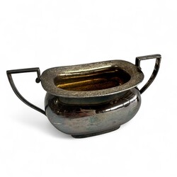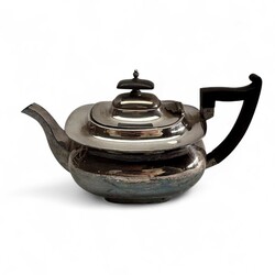 | Omschrijving | Een 20e eeuws driedelig verzilverd theeservies met houten knop en greep, gemerkt Walker & Hall, Sheffield. |
