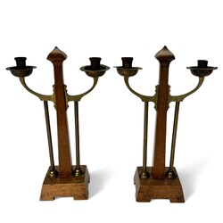 | Conditie | Koperwerk kandelaars enigzins verbogen, één randje mist, wijzerplaat sleets. Werking niet getest (doch lopend) |