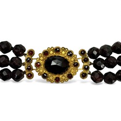 | Kavel | 2221. Drierijig granaten collier met gouden slot |