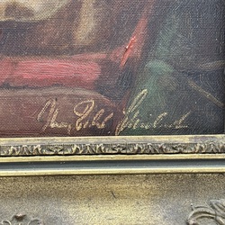 | Omschrijving | Schilderij, olieverf op doek. Portret van een Duitse boer met pijp. Rechtsonder onduidelijk gesigneerd. In vergulde ornamentenlijst. |