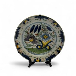 | Kavel | 2270. Een 18e eeuwse Delftse schotel en een terracotta kuikendrinkbak |