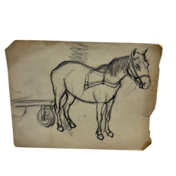 | Omschrijving | Een lot met poltood en houtskool studie tekeningen. Diverse voorstellingen van oa boeren op het land, paarden, landschappen en boerenwagens. Sommige met aantekingen. Tekenaar onbekend, maar omgeving Groningen. |