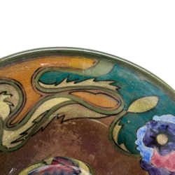 | Omschrijving | Een platelen inktstel op ronde voet. Polychroom jugendstil floraal beschilderd. Gemerkt op de onderzijde voor Zuid-Holland, Gouda. ca 1915. |
