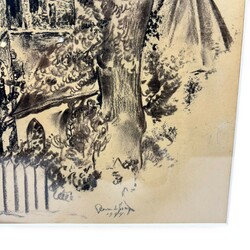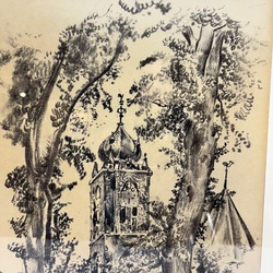 | Omschrijving | Krijttekening op papier, gezicht op de kerk van Deinum. Rechtsonder gesigneerd Germ de Jong (Sint Jacobiparochie 1886 – Overveen 1967), gedateerd 1944. |