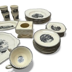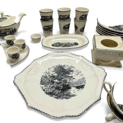 | Omschrijving | Een 20e eeuws aardewerken servies, Petrus Regout, decor landschap. Onder andere eierdopjes, theepot, theekopjes, gebaksbordjes, borden, theelichtje etc. |