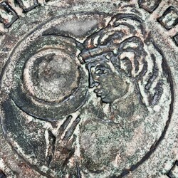 | Omschrijving | Een grote jaren ‘60 West-Germany wandschotel, met reliëfdecor. Aan de achterzijde gemerkt Venus Ceramano W-Germany Handarbeit’ |