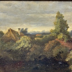 | Omschrijving | Een schilderij olieverf op paneel. Landschap met daken van diverse huizen. Gesigneerd. op achterzijde H. Hareen. Gelijst |