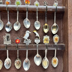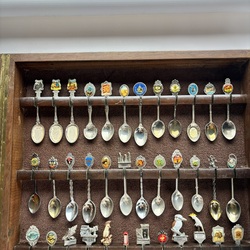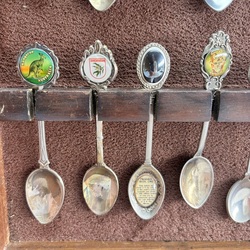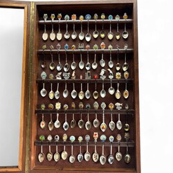 | Omschrijving | Een 20e eeuwse hangvitrine, gevuld met zestig verzilverde lepeltje, thema Australië |