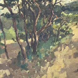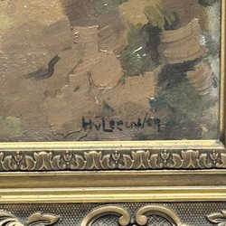 | Omschrijving | Schilderij olieverf op paneel. Bosgezicht. Gesigneerd H (Henk) van Leeuwen (1890-1972). In originele lijst. |