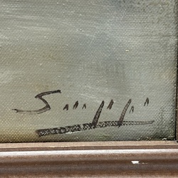 | Omschrijving | Schilderij, olieverf op doek. Polderlandschap met zeilschip en hooibult. Rechtsonder onduidelijk gesigneerd. |