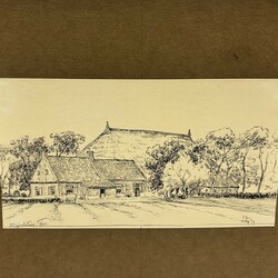 | Omschrijving | Lot van drie laat 19e en vroeg 20e eeuwse inkttekeningen, voorstelling van boerderijen. Titels 'Blija', 'Ferwerder-Rijp' en 'Wijnaldum'. Allen gemonogrammeerd I.W. = Ids Wiersma (Brantgum 1878 -Dokkum 1965), gedateerd 1899, 1903 en 1909. |