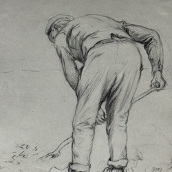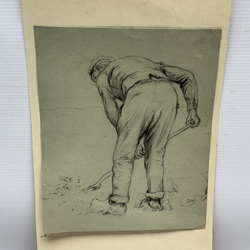 | Omschrijving | Potloodtekening op papier, voorstelling van een boer met een hooivork. Linksonder gemonogrammeerd 'I.W.' = Ids Wiersma (Brantgum 1878 -Dokkum 1965). |