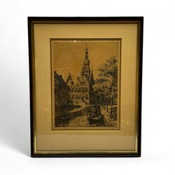 | Omschrijving | Ets, op papier voorstelling van het Stadhuis te Franeker, 1924. Rechtsonder gesigneerd: Ids Wiersma (Brantgum 1878 - Dokkum 1965). Literatuur: M. Oostra (2003) Ids Wiersma, het Grafische werk, nr. 51, p. 86 |