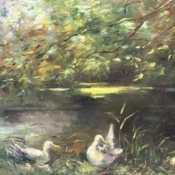 | Omschrijving | Schilderij, olieverf op doek. Eenden aan de waterkant. Rechtsonder gesigneerd Jan Knikker (Den Haag 1889-1957). |