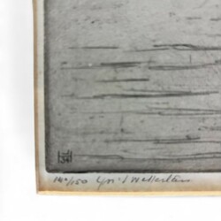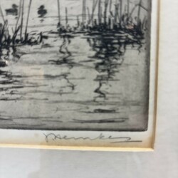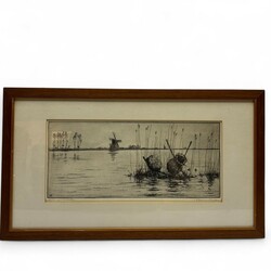 | Omschrijving | Ets op papier, voorstelling van twee eendenkorven en molen, titel ‘Yn ‘t Wetterlan’. Rechtsonder gesigneerd Johan Hemkes (Schalsum 1894 - Bilthoven 1988), gedateerd 1934. |