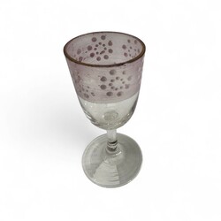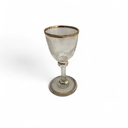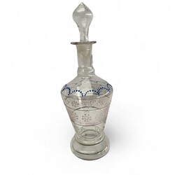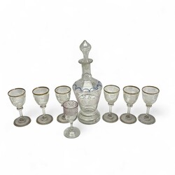 | Omschrijving | Lot divers glas en kristal: een antiek 19e eeuws Frans karafje met emaille beschildering, met daarbij een bijpassend glas. en zes 19e eeuwse kristallen borrelglaasjes met vergulde rand en geslepen decor van druivenranken. |