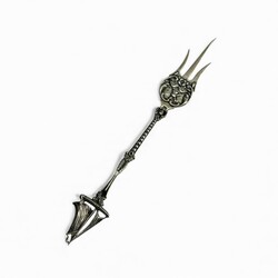 | Omschrijving | Lot divers zilver: een 20e eeuwse tweede gehalte (835/1000) zilveren cakeprikker, bekroond met een zeilboot en molen. Meesterteken 'AxM' = Alex Meijer, Schoonhoven, jaarletter S = 1928. Met daarbij een antieke 19e eeuwse tweede gehalte (835/1000) zilveren naaischaar in schede, gemerkt met zwaardje en meesterteken PC114 = Paulus Cabboes Riddersma, werkzaam te Leeuwarden van 1836 tot 1859. En een Engels kristallen zoutvaatje op eerste gehalte (925/1000) voet, met bijpassend lepeltje, gemerkt Birmingham, mr.JR = John Rose, jaarletter E (1904). |
