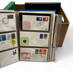 | Omschrijving | Lot diverse postzegelmapjes: één doos periode 1985-2000 met ca. 220 exemplaren, en één doos met periode 2002 tot 2009, met ca. 160 exemplaren. Met daarbij twee albums met eerstedagenveloppen en één album met postzegelmapjes |