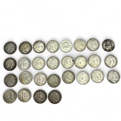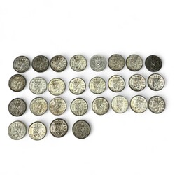 | Omschrijving | Lot diverse zilveren 1 Gulden munten, Juliana Koningin der Nederlanden. Diverse jaartallen: 3x 1954, 3x 1956, 3x 1957, 3x 1958, 2x 1963, 3x 1964, 4x 1965, 5x 1966. Met daarbij twee onedele exemplaren, 1969. |