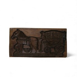 | Omschrijving | Eén grote koekplank met een voorstelling van een man in een paardenkoets. De koekplank is afgewerkt met een ijzere rand. |