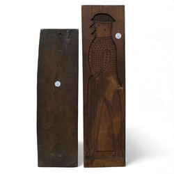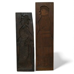 | Omschrijving | Lot van 2 grote koekplanken met een voorstelling van een mooi geklede vrouw en een voorstelling van een vrouw op de voor en achterkant. |
