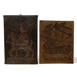 | Omschrijving | Lot van 2 grote koekplanken met een voorstelling van een ruiter en paard en een groot schip. |
