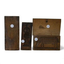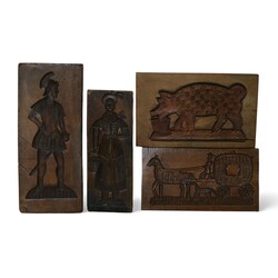 | Omschrijving | Lot koekplanken met onder andere een voorstelling van paard en wagen, een varken en diverse personen. Één van de planken is op de zijkant gesigneerd met WV. 1857. |