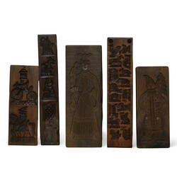 | Omschrijving | Lot koekplanken met onder andere een voorstelling van een fiets, ruiter en paard en diverse personen. |