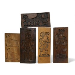 | Omschrijving | Lot koekplanken met onder andere een voorstelling van een paard en wagen, molen, een kat en hond en diverse personen. Één van de planken is op de voorkant gesigneerd met JV. |