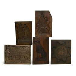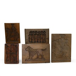 | Omschrijving | Lot koekplanken met onder andere een voorstelling van een hond, een koe en ruiter en paard. |