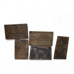 | Omschrijving | Lot koekplanken met onder andere een voorstelling van een varken, een vaas, een schip en een kar. |