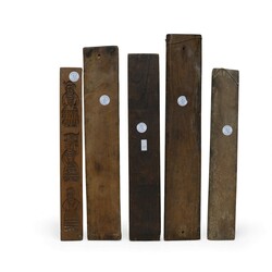 | Omschrijving | Lot koekplanken met onder andere een voorstelling van schepen en diverse mensen, dieren en figuren. |