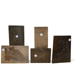 | Omschrijving | Lot koekplanken met onder andere een voorstelling van een kat, een koe, ruiters en paarden, en een schaal met fruit. |