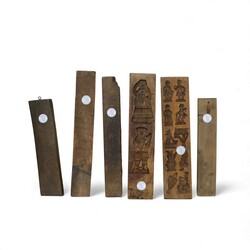 | Omschrijving | Lot koekplanken met onder andere een voorstelling van diverse dieren en personen, een kleine molen en een klein schip. Één van de planken is met PL aan de zijkant gesigneerd. |