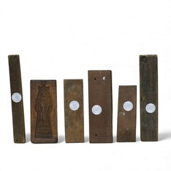 | Omschrijving | Lot koekplanken met onder andere een voorstelling van een wapen, een vrouw, diverse theepotten en kannen en een tram. De koekplank met de tram heeft GETA 76 erin gesneden. |