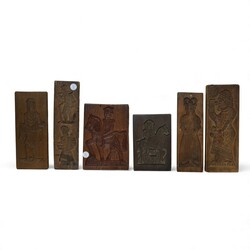 | Omschrijving | Lot koekplanken met onder andere een voorstelling van een ruiter en paard, een schip, Jezus en diverse personen. De plank met ruiter en paard is afgewerkt met een ijzere rand. |