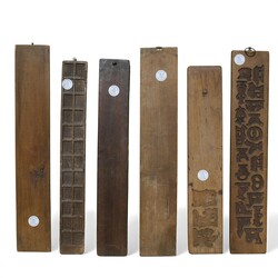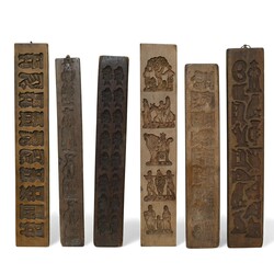 | Omschrijving | Lot koekplanken met onder andere een voorstelling van vissen en diverse dieren en personen. |