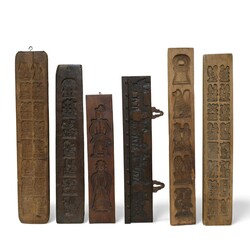 | Omschrijving | Lot koekplanken met onder andere een voorstelling van paard en wagens en diverse personen, dieren en figuren. Bij de plank met paard en wagens steekt de onderkant een beetje uit en zitten er haakjes aan. |