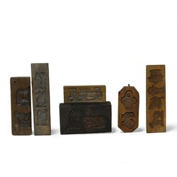 | Omschrijving | Lot koekplanken met onder anderen een voorstelling van een leeuw, een trein en diverse dieren en personen. |