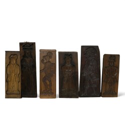 | Omschrijving | Lot koekplanken met een voorstelling van diverse personen. 3 van de planken zijn afgewerkt met een ijzere rand en één is op de voorkant gedateerd 1805. Ook is er een plank met TH op de voorkant gesigneerd. |