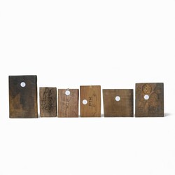 | Omschrijving | Lot koekplanken met onder andere een voorstelling van een haan, diverse personen en diverse dieren. Op 2 van de planken met personen staat PTH op de achterkant. Op een andere plank met personen staat L.V. |