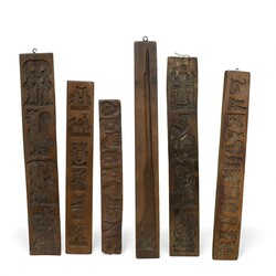 | Omschrijving | Lot koekplanken met onder andere een voorstelling van een langnek geweer, een zwaard, een zeemeermin, een haan en diverse personen en dieren. |