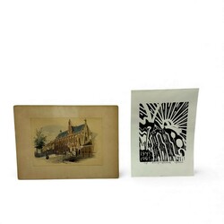 | Omschrijving | Lot van drie kunstwerken: aquarel op papier, voorstelling van de Kanselarij te Leeuwarden, houtsnede, bevrijdingsfeest Leeuwarden 1994/1995 door Eddy Sikma (Leeuwarden 1957 - Harlingen 2025) en een potloodtekening op papier, Adrendstraat Leeuwarden, door Simon Kamminga (Harlingen 1895 - Leeuwarden 1984). |