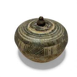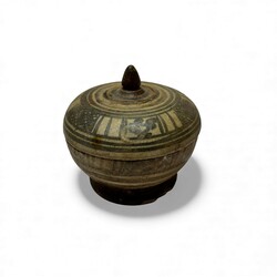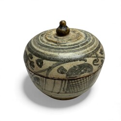 | Omschrijving | Lot van vier stuks Thaise Sawankhalok aardewerken ronde deksel of zalfdoosjes. Niet alle deksels bijpassend. 15e eeuws. |