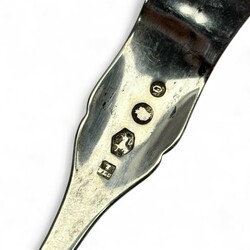 | Omschrijving | Lot divers tweede gehalte (835/1000) zilveren schepwerk, waaronder een set 19e eeuwse advocaatlepels met getorste steel en graveerwerk, en een montuur voor een zilveren schaaltje |
