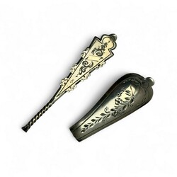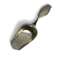 | Omschrijving | Lotje divers 19e eeuws en 20e eeuws tweede gehalte (835/1000) Nederlands zilveren schepwerk, waaronder een Biedermeier theeduimpje, mr. Brunings, Joure (1849-1902), suikerschepje met schelpvormige bak, onduidelijk meesterteken, 20e eeuws suikerschepje model hanekam, van der Meulen, Joure, een 19e eeuws lepeltje, Johannes Hendrikus Tamer, jaarletter F (1840) en enkele beschadigde stukken. |