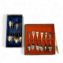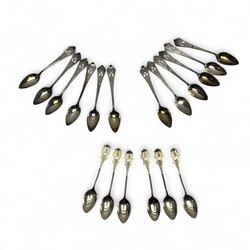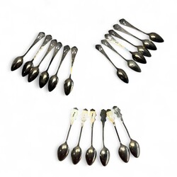 | Omschrijving | Lot van twee sets 20e eeuwse tweede gehalte (835/1000) zilveren theelepels, zes exemplaren model hanekam, mr. van der Meulen, Joure, jaarletter B (1961). En een set van twaalf lepeltjes, mr. ‘IJS 3’ = IJ. Steensma, Bergum, werkzaam van 1916 tot 1925. |