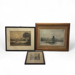 | Omschrijving | Lot van drie etsen op papier, Rees aan de Rijn, St. Jacobstoren Antwerpen en zeilschip op het IJ, Amsterdam. Allen rechtonder gesigneerd Martin van Waning (Den Haag 1889 - Dokkum 1972) |
