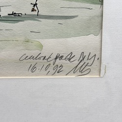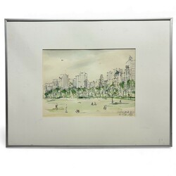 | Omschrijving | Een aquarel op papier. Gezicht op centralpark in New York met de wolkenkrabbers in de achtergrond. Gedateerd 16/10/1992 en onduidelijk gesigneerd. Gelijst. |