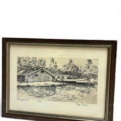 | Omschrijving | Lot van vier etsen, titels 'De Sweach', 'St. Nicolaasga', 'Langweer' en 'Hadewe Kornhorn '. Allen rechtsonder gesigneerd Piet de Vries (Koudum 1932 - Drachten 2003), 3x oplage 50, 1x oplage 150. |